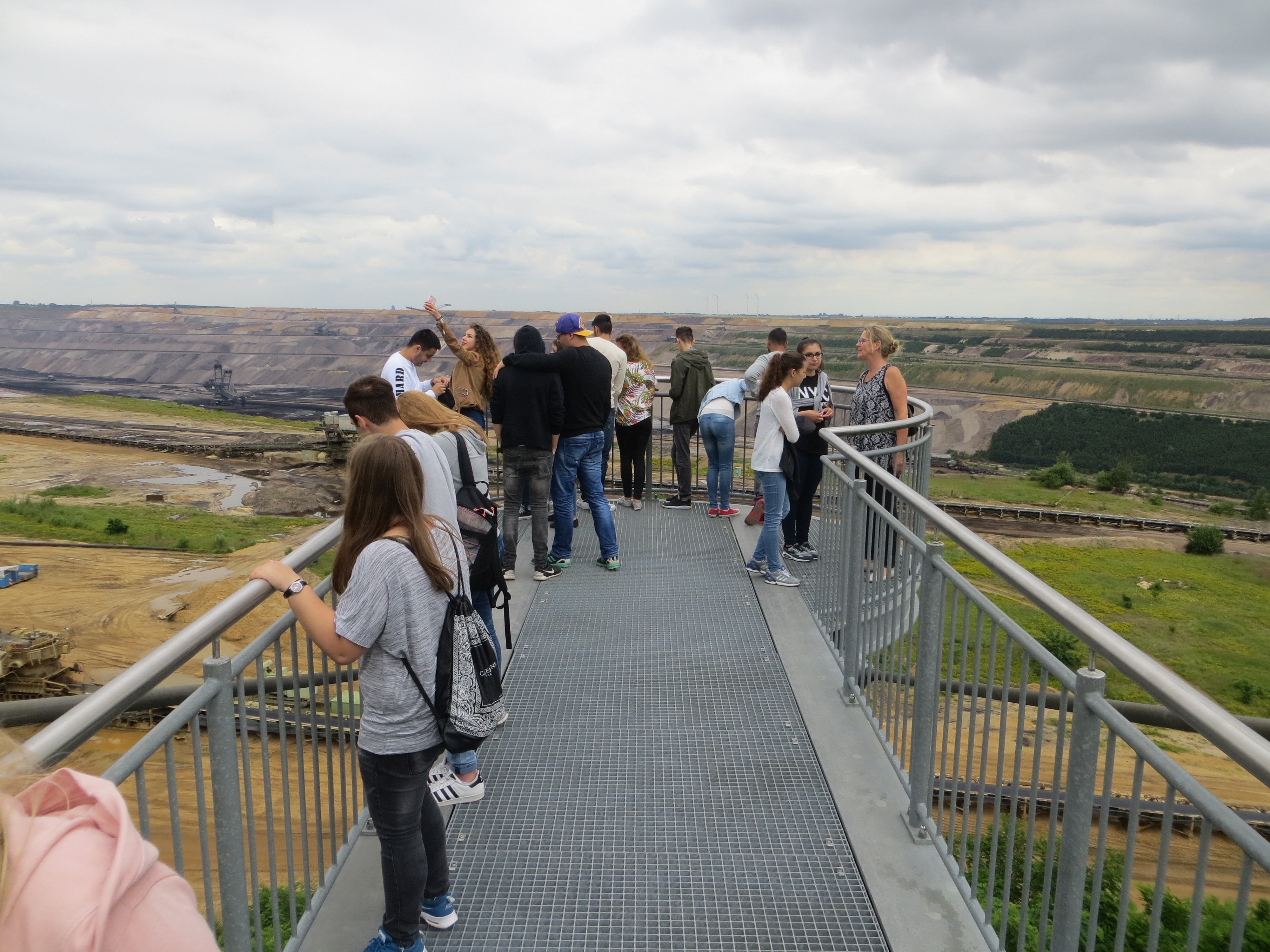 Dass der Strom aus der Steckdose kommt, weiß jeder, aber was alles investiert werden muss, um unsere Smartphones, Laptops und Tablets zu laden, erfuhren die Schülerinnen und Schüler bei diesem fachlichen Ausflug. Das eingesetzte Großgerät wie Schaufelradbagger sowie die kilometerlangen Förderbänder waren in ihren Dimensionen kaum zu realisieren und sehr beeindruckend. Ein Unbehagen stellte sich ein, als wir durch ein Geisterdorf fuhren, das aufgrund des Strombedarfs von uns allen entstanden ist und die Menschen dort ihre Heimat aufgeben mussten. Nicht nur die Umsiedlung der Lebenden ist für die Gewährleistung unserer Stromversorgung notwendig, sondern auch die der Kirchen, der Spiel- und Sportplätze, der Vereine und sogar die der Toten auf den Friedhöfen.