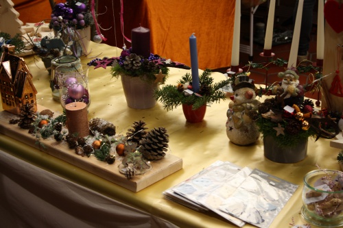 Auch der Förderverein hat wieder sehr fleißig die tollen Adventskränze und Weihnachtsdeko gebaut und verkaufte diese dann auf den Basar. Zudem verkaufte die neue Klasse von Fr. Wolff auch wieder Lose, mit denen mal tolle Preise gewinnen konnte. Es waren wirklich gute und schöne Geschenke dabei, die die Besucher an der Klassenständen erwerben konnten. Sehr viele Eltern kamen und aßen in der Schulmensa ein Stück Kuchen und tranken einen Kaffee oder hörten einfach der etwas Musik. Am frühen Morgen gab es auch für die  Grundschüler Probeunterricht. Es wurden viele verschiedene Schulfächer angeboten, bei denen man sich aussuchen konnte, welches Fach man sich gerne anschauen wollte. Die Eltern bekamen in der Zeit eine Schulführung. Auch dieses Jahr gab es wieder viel Spaß und Weihnachtsstimmung auf unserem Adventsbasar, hoffentlich auch im nächsten Jahr. Also Leute, bis zum nächsten Adventsbasar.
