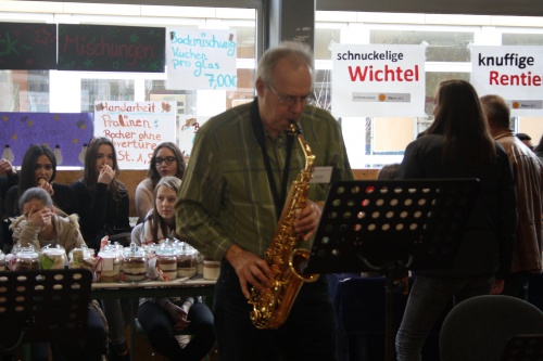 Auch dieses Jahr fand wieder ein spannender Adventsbasar statt. Alle Klassen hatten ihre Stände wieder aufgebaut und ihre eigene Idee gesammelt und hinterher verkauft. Jeder etwas Anderes und sehr vielseitig. Selbst der Schulleiter, Hr. Bisterfeld, sowie die Musiklehrer Hr. Palmowski, Hr. Krull, Hr. Grollmann sowie Hr. Hillbrunner musizierten mit ihren Instrumenten und brachten Weihnachtsstimmung in das PZ.