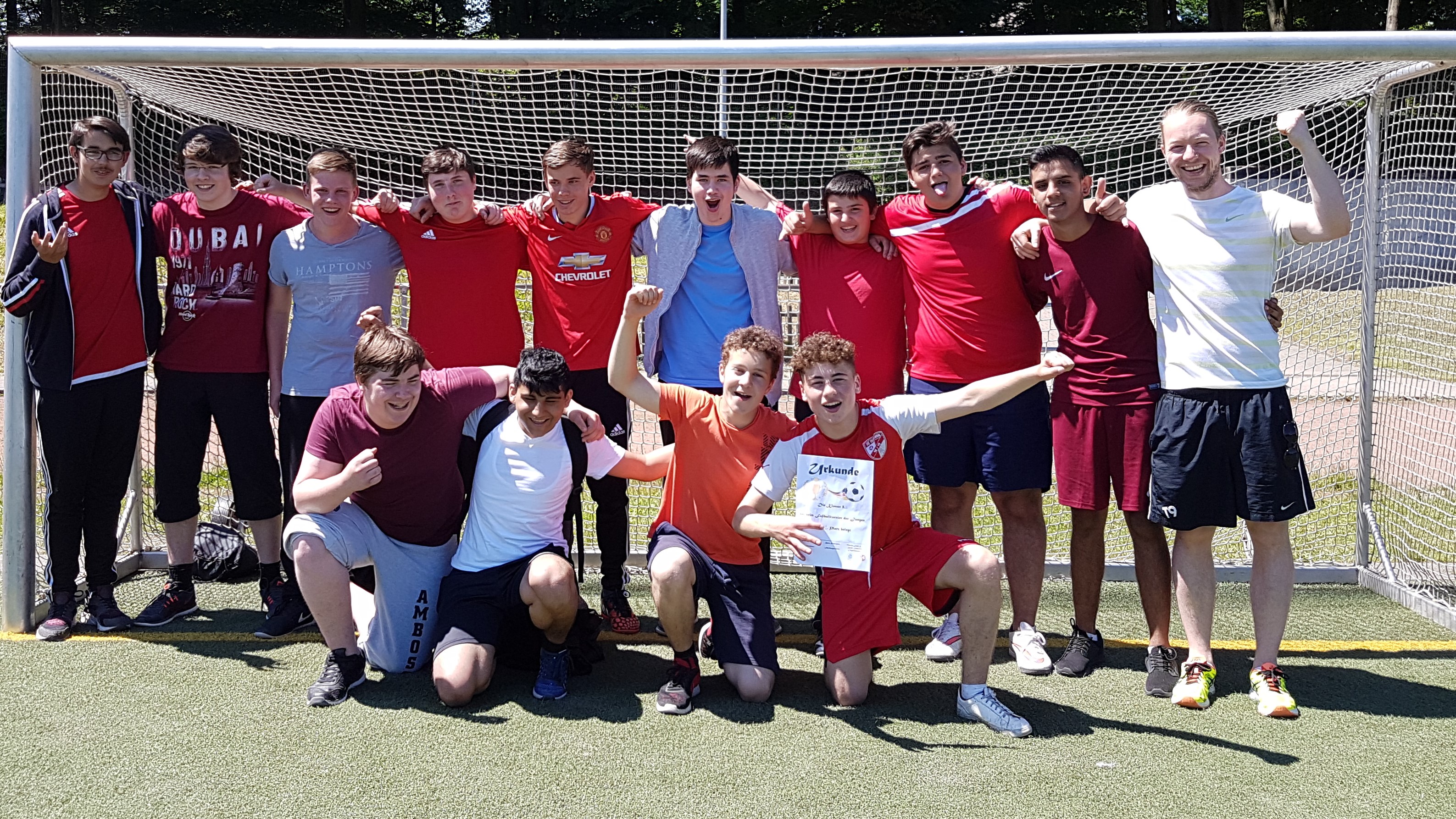 Auch in diesem Jahr begegneten sich die Klassen des achten Jahrgangs auf unserem Kunstrasenplatz in der LüWo-Arena am Wehberg. Frau Lemreize, Herr Scholz und Herr Lisek organisierten/führten das Turnier. Nach einer Vorrunde gab es dann Spiele um den fünften, dritten und natürlichen ersten Platz. Dieser Modus versprach sehr viel Action und zusätzliche Motivation, die bei allen Akteuren zu spüren war.