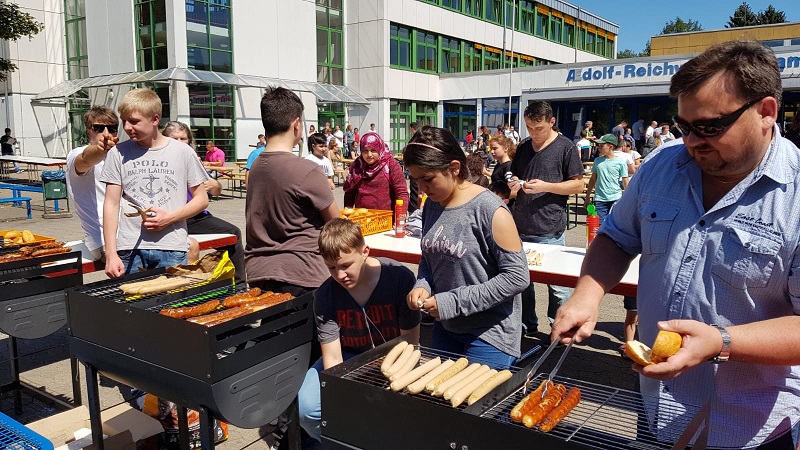 Bei bestem Wetter hatten anschließend alle Beteiligten der Schulgemeinde die Möglichkeit am Sommerfest der Schule teilzunehmen. Der Förderverein der Schule sorgte für Würsten und kalte Getränke, die Klassen der Schule beteiligten sich mit allerlei Leckereien.