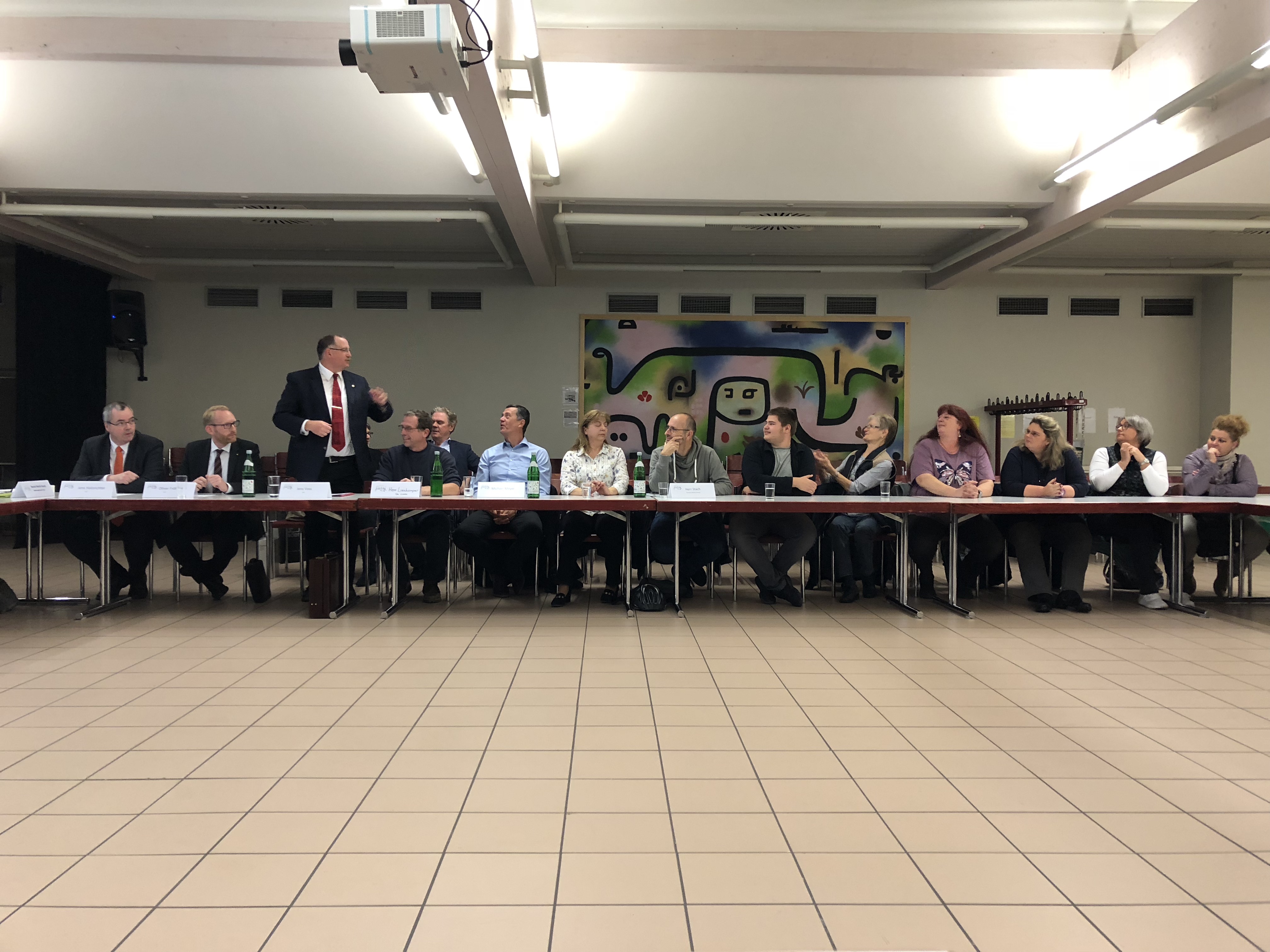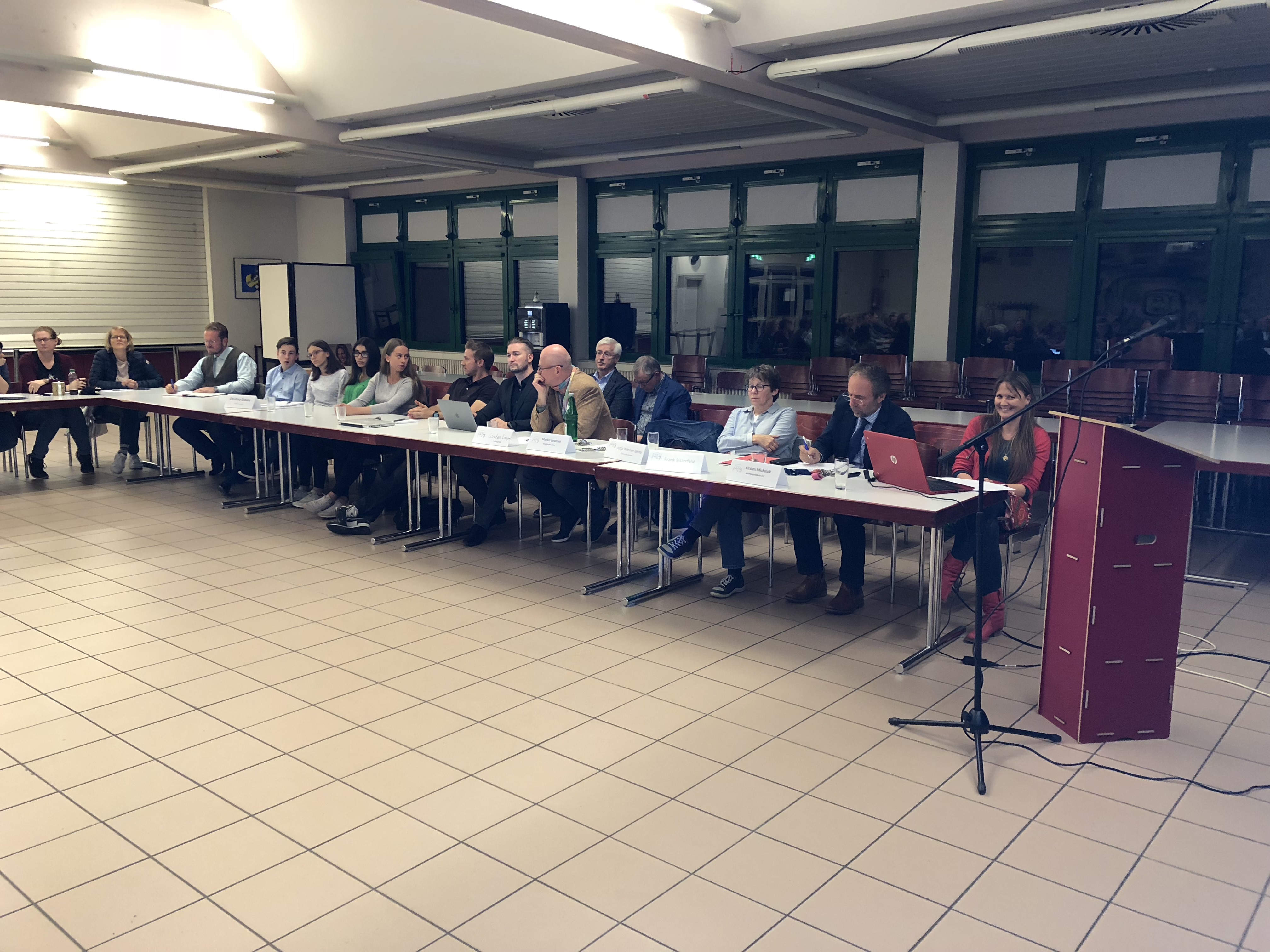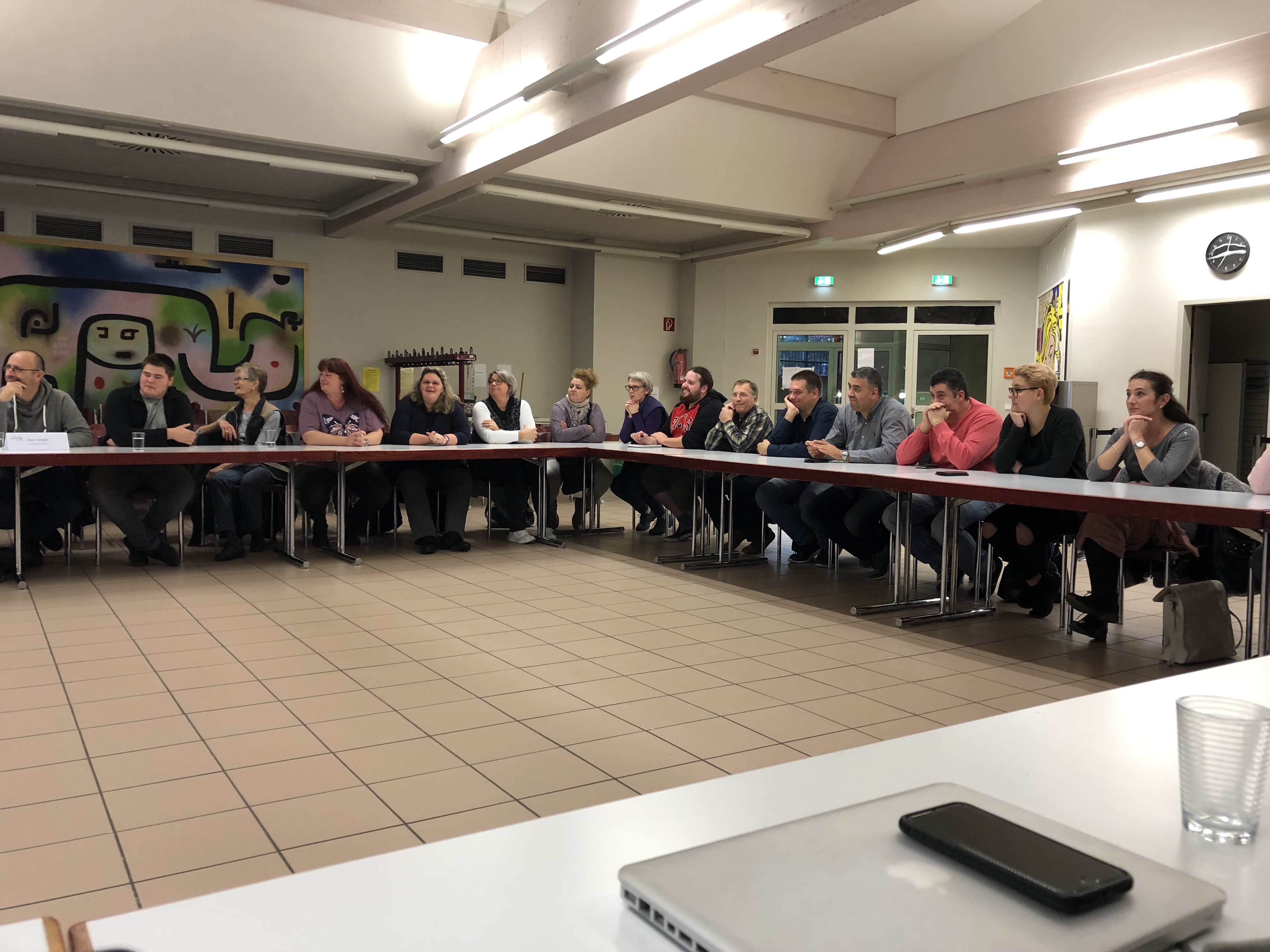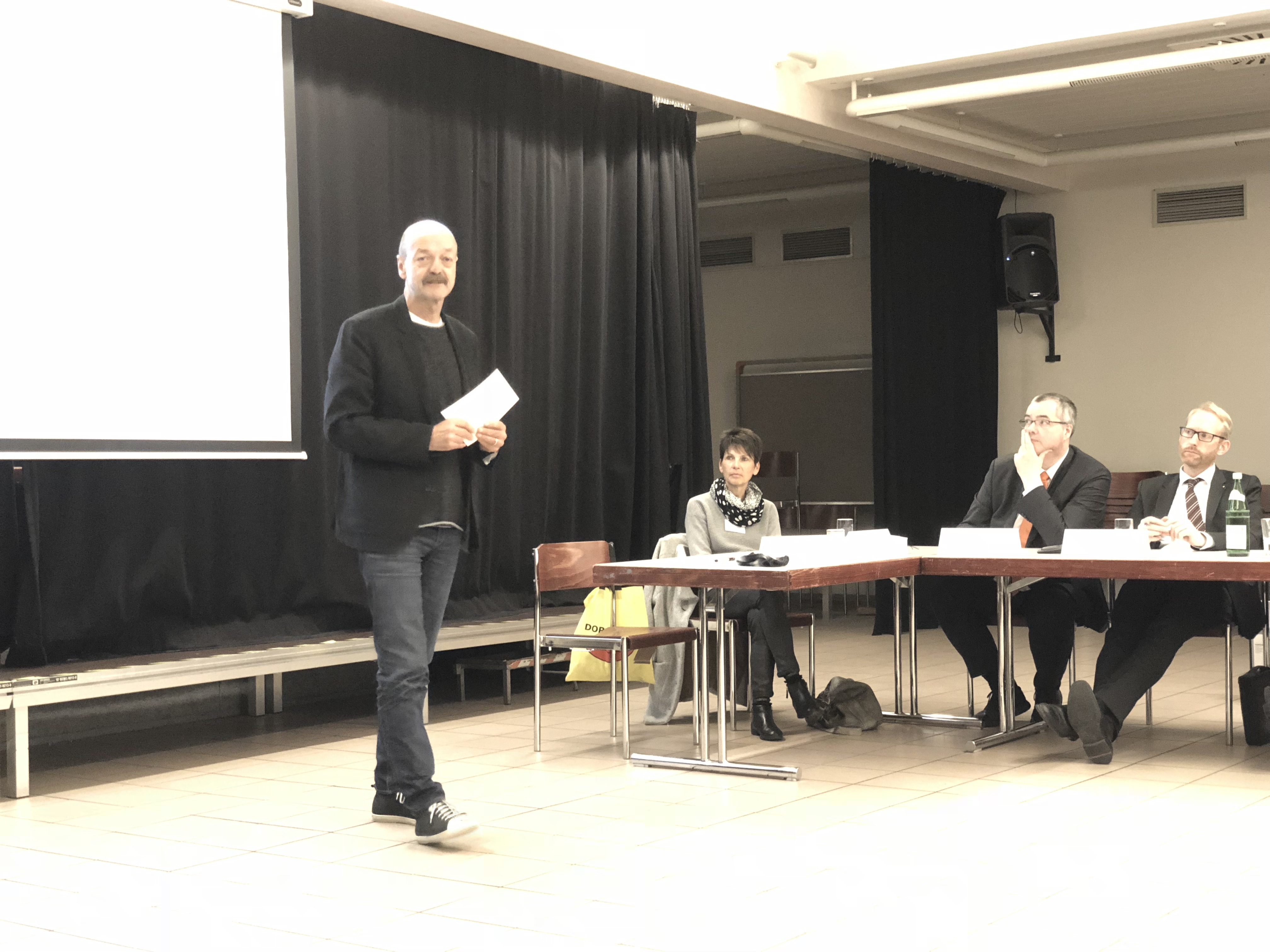 Er beginnt mit der Vorstellung der Diskussionsteilnehmer aus Schulleitung, Lehrer-, Schüler- und Elternschaft, Kommunalverwaltung sowie Politik, gab einen kurzen Überblick über den geplanten Verlauf des Abends und führte gemeinsam mit dem Stellvertretenden Schulleiter Dr. Egbert Koch durch die Veranstaltung. Eröffnet wurde das Diskussionsformat durch ein Kurzreferat des Didaktischen Leiters Markus Ignatzek zur Schulform der Gesamtschule, Frau Kirsten Michalzik (Abteilungsleitung I) zeigte auf, dass neue Medien, der Wandel der Familienform und Wertepluralismus zu gesellschaftlichen Veränderungen in der heutigen Zeit führen und somit zu heterogenen Lerngruppen, in denen dem Erziehungsauftrag, Mehrsprachigkeit und Inklusion eine immer größere Bedeutung zukommt. Frank Bisterfeld präsentierte Fakten, die für sich sprechen: Die Städt. Adolf-Reichwein-Gesamtschule existiert seit 31 Jahren, guter Ruf über die Stadtgrenzen hinaus, 1246 Schülerinnen und Schüler, über 48 integrierte Seiteneinsteiger, überdurchschnittlich steigende Anmeldezahlen, allein 195 Neuanmeldungen für das Schuljahr 2018/19, viele Absolventen mit Fachoberschulreife, ein Großteil mit zusätzlicher Qualifikation zum Besuch der Gymnasialen Oberstufe und Abiturienten, von denen lediglich 2% nach der Grundschule eine Gymnasialempfehlung attestiert wurde. Im Widerspruch dazu stehen bauliche und räumliche Mängel, der Renovierungsstau seit den 1990er Jahren, unangenehme Arbeitsbedingungen für Schüler und Lehrer u.a. defektes Mobiliar, untragbare Temperaturen von bis zu 40°C im Sommer und Kälte im Winter sowie eine nicht existente Digitalisierung. Aufmerksam und interessiert lauschen die Zuschauer den drei Kurzreferaten, denn die Inhalte betreffen alle.In der anschließenden fairen Diskussionsrunde sind sich das Kollegium sowie die Schüler- und Elternschaft einig, gefordert wird die Behebung der baulichen Mängel, zusätzliche Klassen-, Fach- und Differenzierungsräume, Breitbandanschluss für schnelles Internet, WLAN, eine zeitgemäße mediale und materielle Ausstattung, um schülerorientieren Unterricht machen zu können, bei dem gemäß des Namensgebers Adolf Reichwein, jedes Kind nach seinem eigenen Rhythmus wachsen kann.Vor allem Jens Voss (SPD) und Michael Thomas-Lienkämper (Die Linke) erkennen den Handlungsbedarf. Am Ende des 2. Gesamtschulforums ist klar, dass alle Beteiligten durchaus gesprächsbereit sind, ob es ein Erfolg war, hängt davon ab, wann und in welchem Ausmaß die Mängel behoben werden und das entscheidet die Stadtverwaltung in der nächsten Haushaltplanberatung. Ein konkreter Zeitraum zur Durchführung der Maßnahmen wurde seitens der Politik oder Kommunalverwaltung nicht benannt. Festzuhalten bleibt, dass eine optimale Förderung, die zu guten Abschlüssen führt, einer finanziellen Unterstützung durch den Schulträger bedarf.