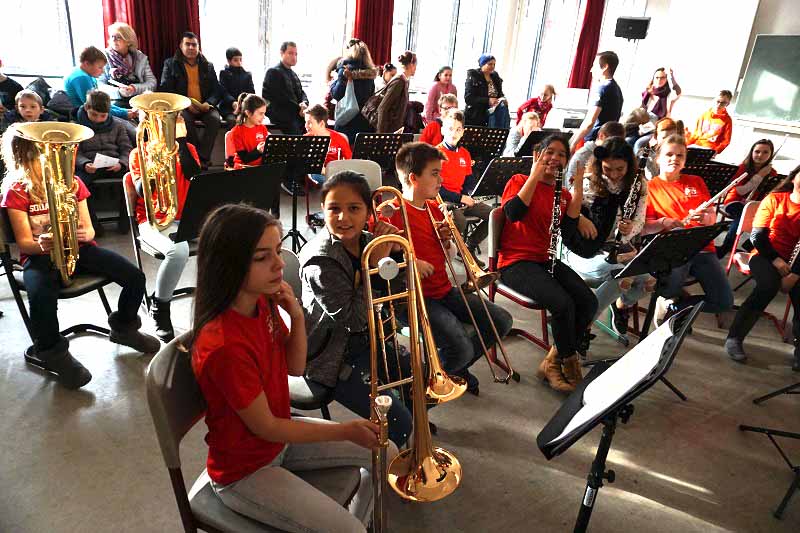 Auch in diesem Jahr stieß der „Tag der offenen Tür“ bei Grundschuleltern mit ihren Kindern sowie bei den künftigen Schülerinnen und Schülern der gymnasialen Oberstufe auf großes Interesse. Zunächst wurden die Gäste musikalisch von der Bläserklasse des 6. Jahrgangs begrüßt. Während die Viertklässler am Probeunterricht der Fünftklässler teilnahmen, informierten Schulleiter Frank Bisterfeld und Abteilungsleiterin Kirsten Michalzik die Eltern über die möglichen Schullaufbahnen und Besonderheiten der Gesamtschule.