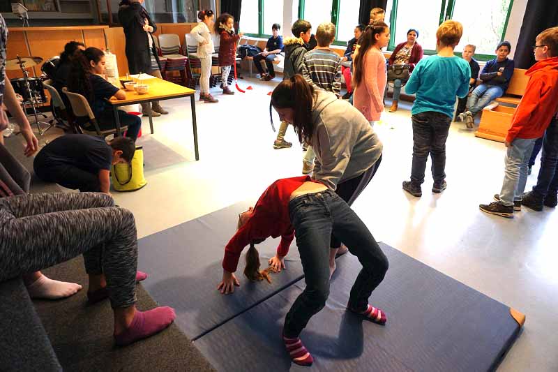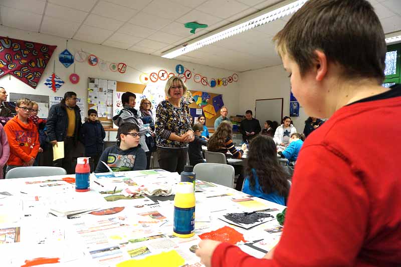 Anschließend konnten die Grundschuleltern gemeinsam mit ihren Kindern in geführten Rundgängen einen Einblick in den Unterricht der sechs verschieden Schwerpunktklassen des 5. Jahrganges gewinnen. Hier konnten die Schüler und ihre Eltern z.B. Weihnachtskarten drucken, einen Film über die Wünsche der Kinder in Europa schauen, experimentieren, das Funkalphabet lernen, einem Musikunterricht beiwohnen oder sein sportliches Geschick beweisen. Die Interessenten der gymnasialen Oberstufe wurden auf einem Fächerbasar, gemeinsam von Schülern und Lehrern über das Fächerangebot und die Anforderungen in der Sekundarstufe II informiert.