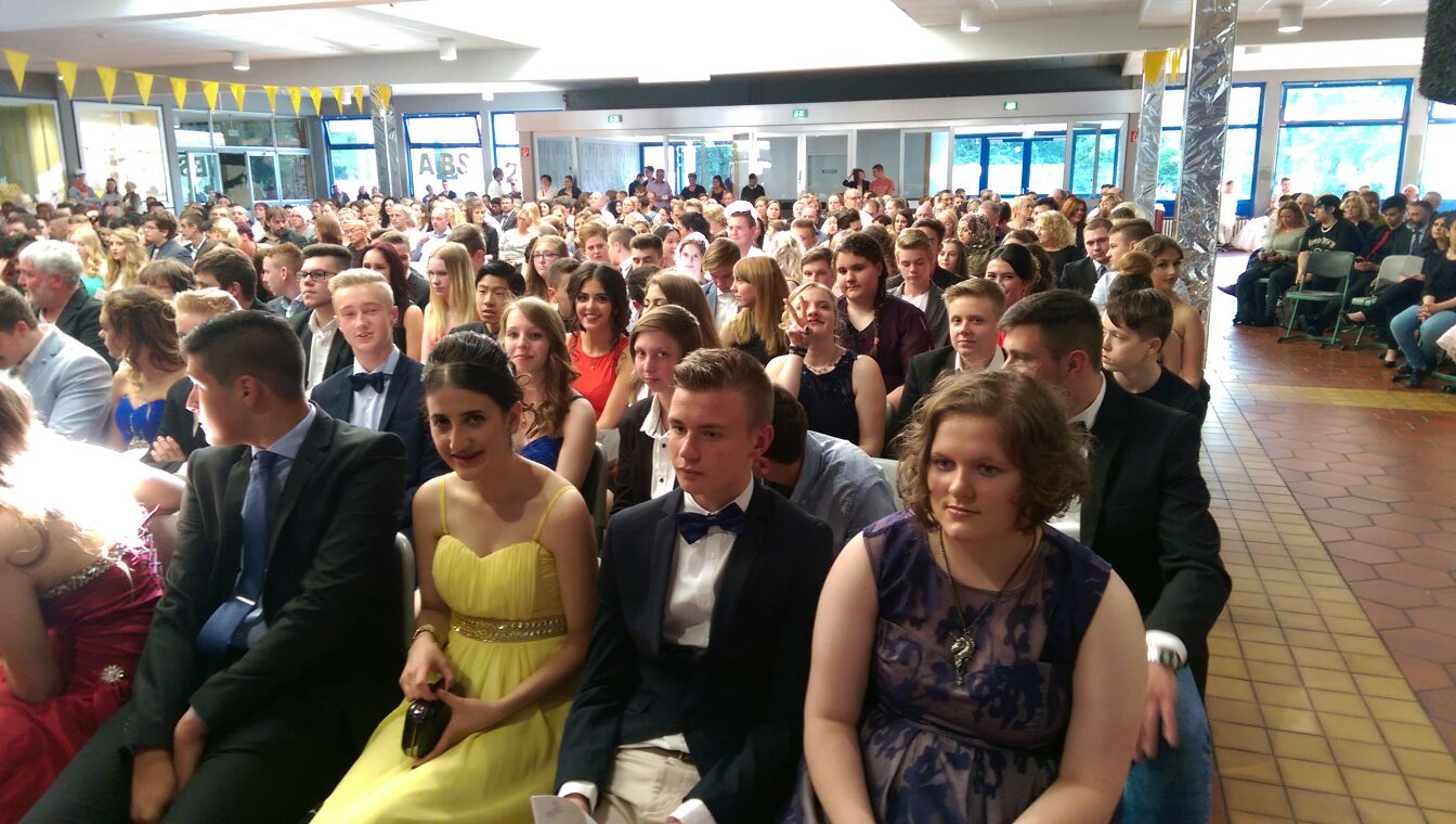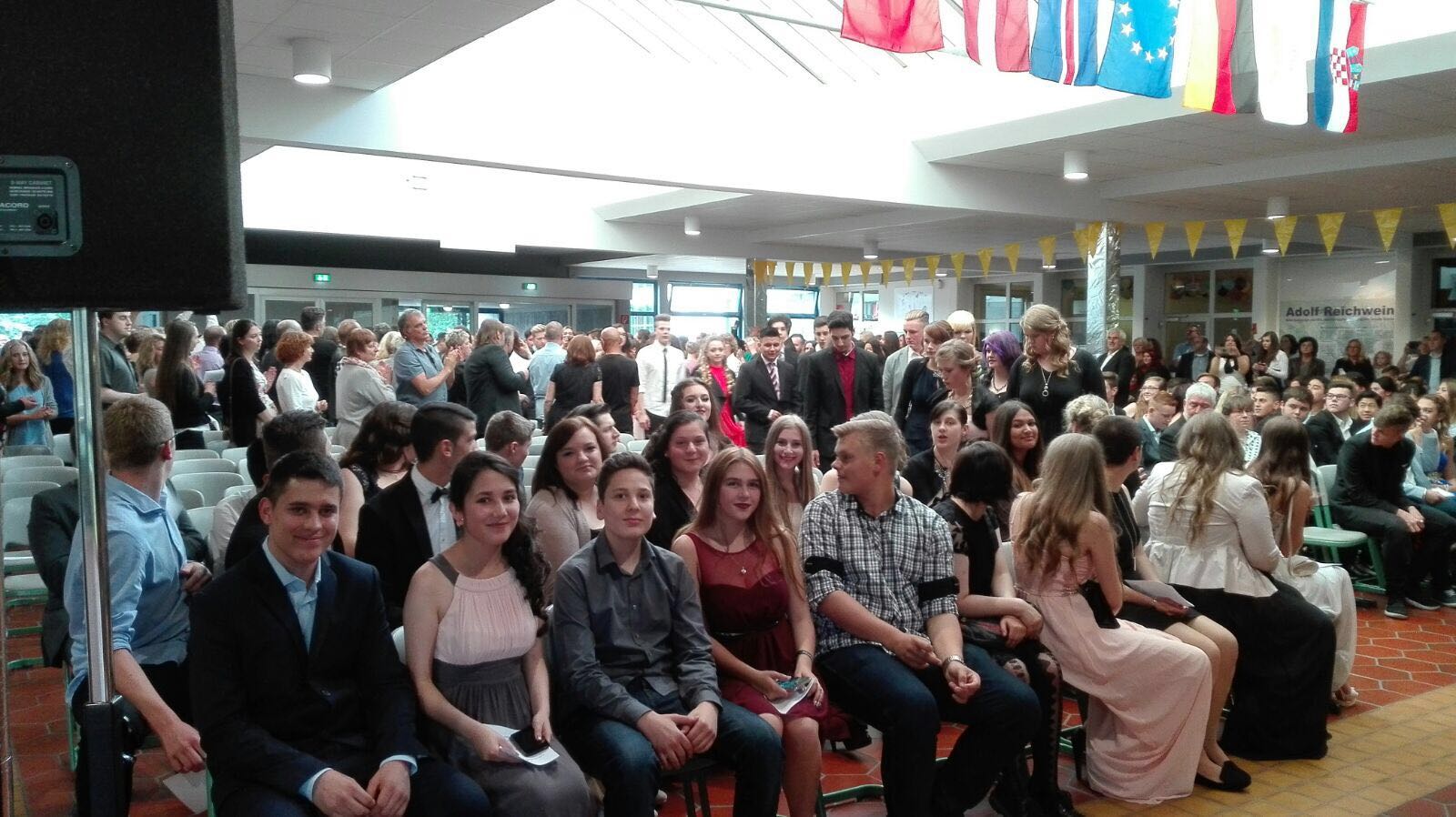 Mit einer tollen und kurzweiligen Abschlussfeier im rappelvollen PZ der Schule, das mit Eltern, Freunden und Verwandten gefüllt war, verabschiedete sich ein Großteil unserer Zehntklässler. Jede Klasse hatte ihren Teil zum Programm beigetragen, die Reden waren mit interessanten und lustigen Anekdoten versehen, setzten sich aber auch kritisch mit dem Schulalltag und der nachfolgenden Zeit auseinander.